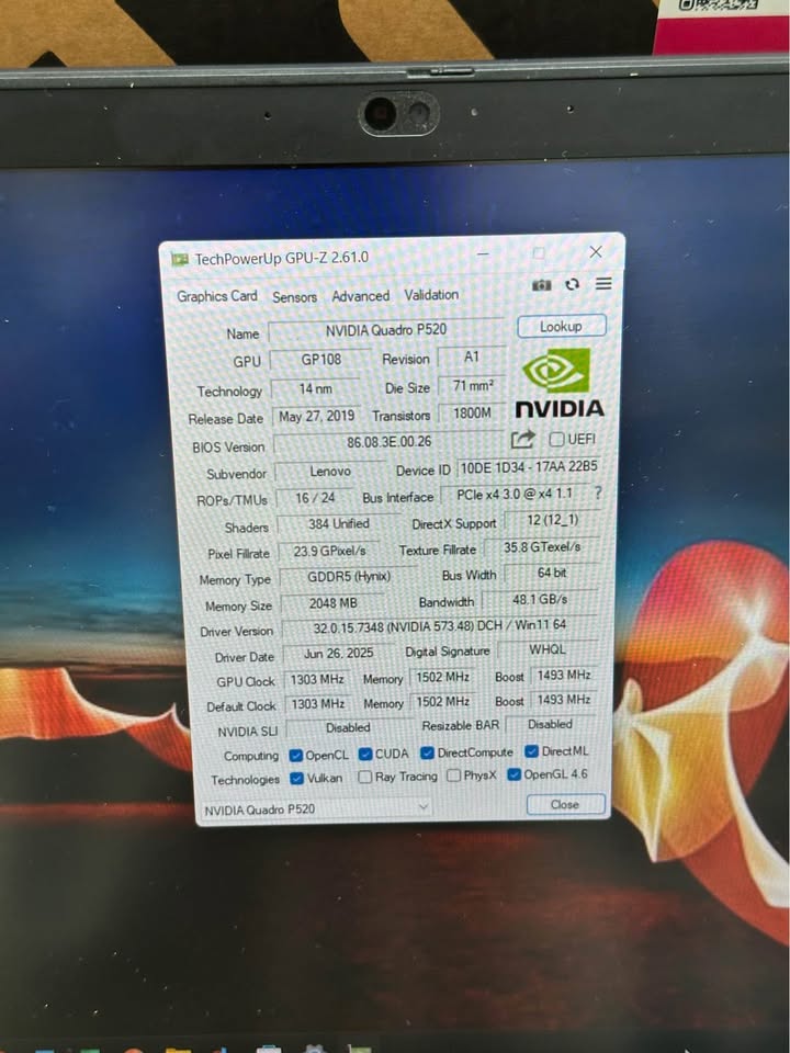 LENOVO P15 gen1 I7-10850H Ram 16G Ssd 256G Quadro T1000 4G