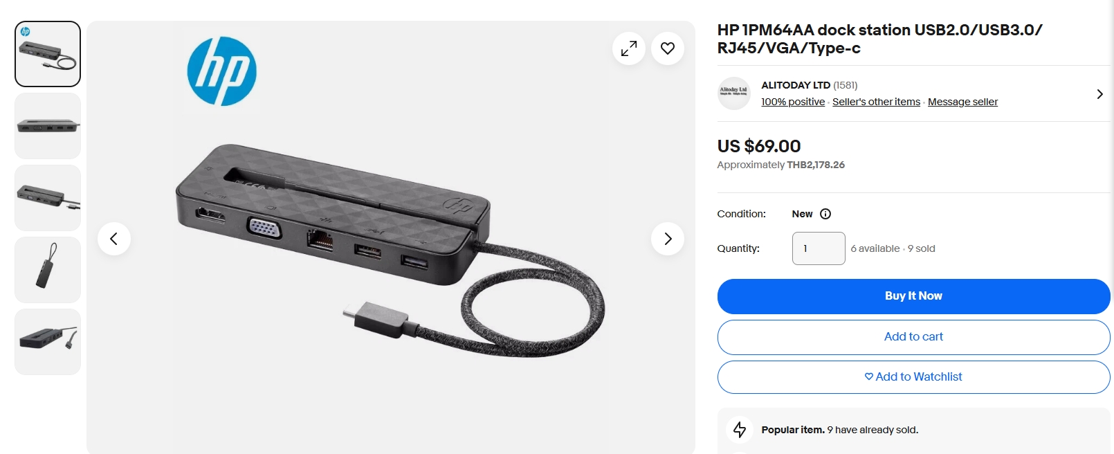 HP 1PM64AA ด็อก USB-C(สินค้ามือ 2 สภาพ 95%+)